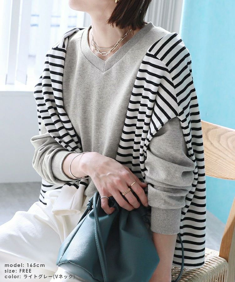 Vネック/ライトグレー