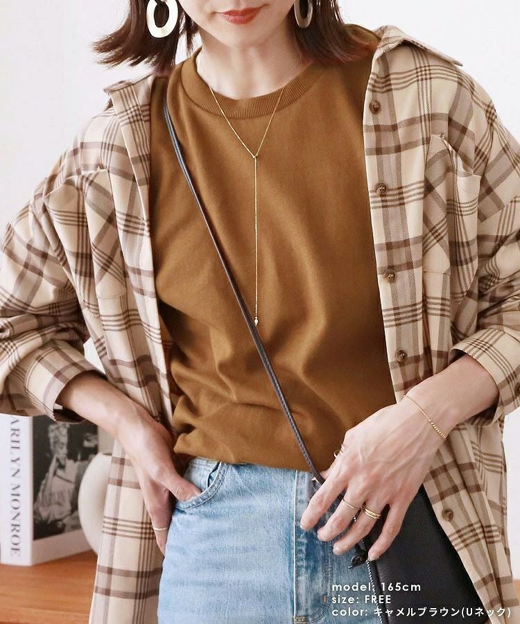 Uネック/キャメルブラウン