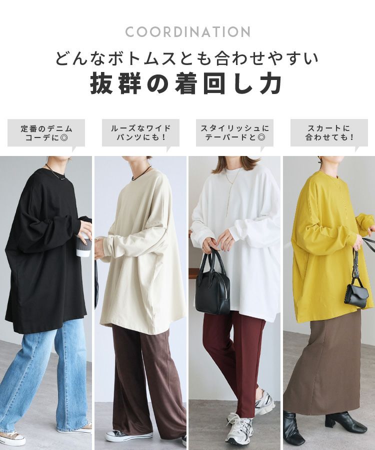 レディース トップス スウェット プルオーバー 長袖 無地 オーバーサイズ ビッグシルエット ゆったり 大きいサイズ ワイド チュニック ボリュームスリーブ ゆるシルエット 体型カバー カジュアル シンプル ベーシック 楽ちん ボリューム袖 袖コンシャス エクリュ マスタード テラコッタ ホワイト 白 ブラック 黒 ベージュ モカ