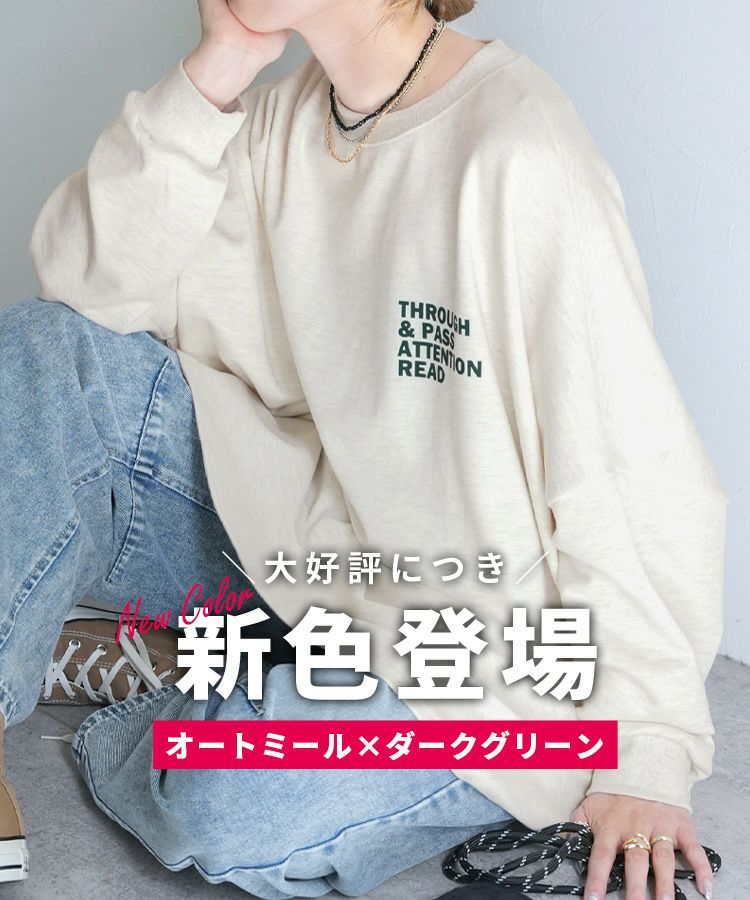 レディース トップス 薄手 長袖 スウェット トレーナー プルオーバー チュニック ロゴ 体型カバー オーバーサイズ カジュアル シンプル 楽ちん おうちコーデ クルーネック 丸首 大人女子 30代ファッション 30代コーデ オートミール ブラック アイボリー ブリック インクブルー エクリュ チャコール レモン