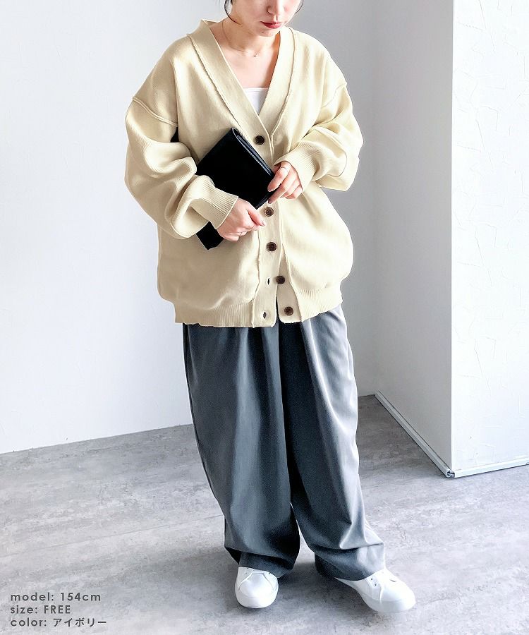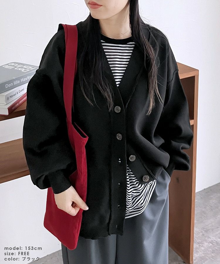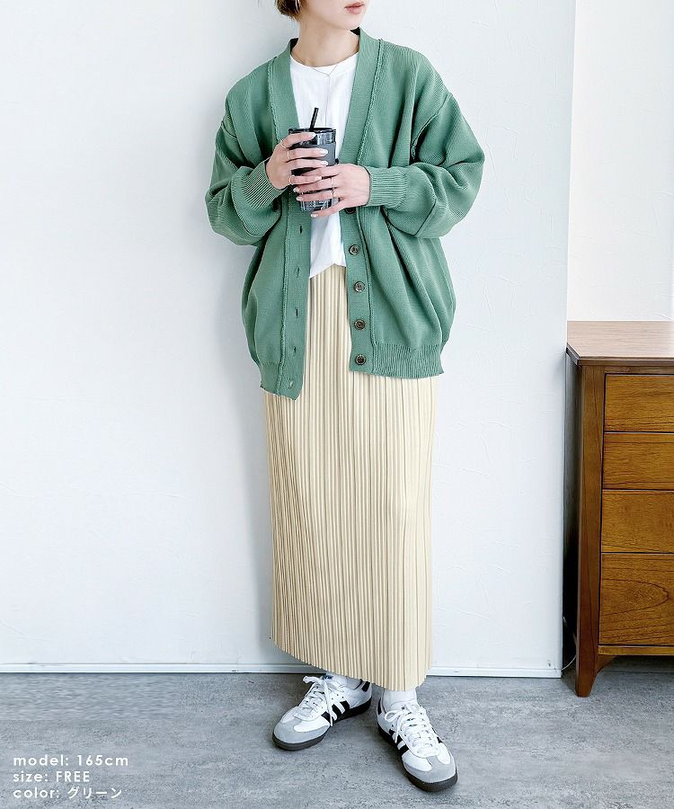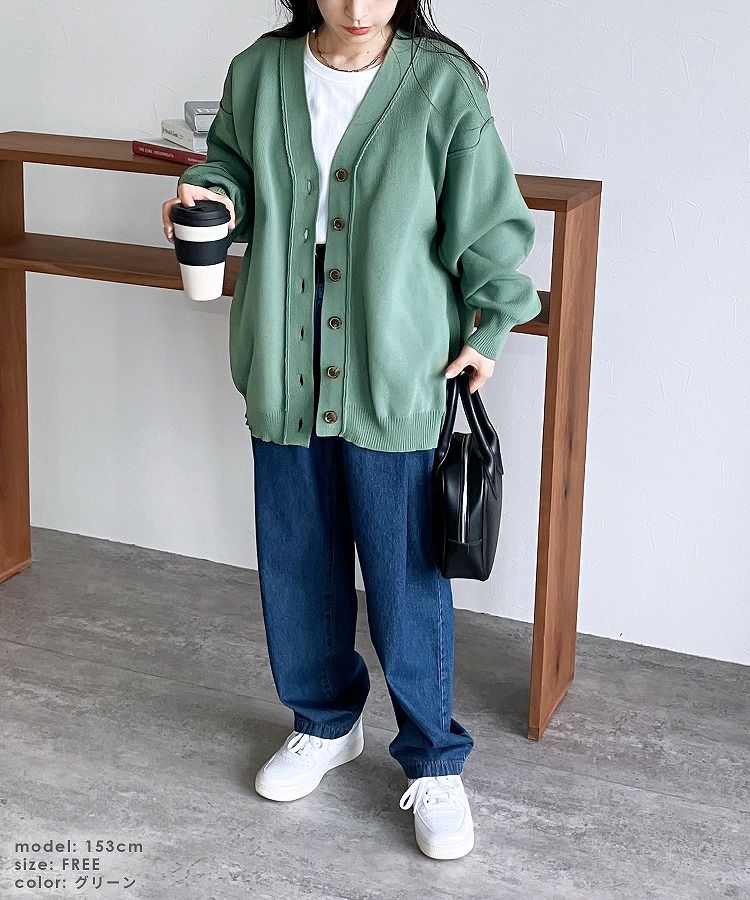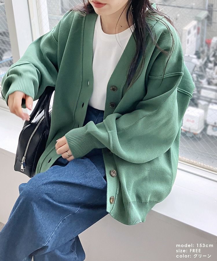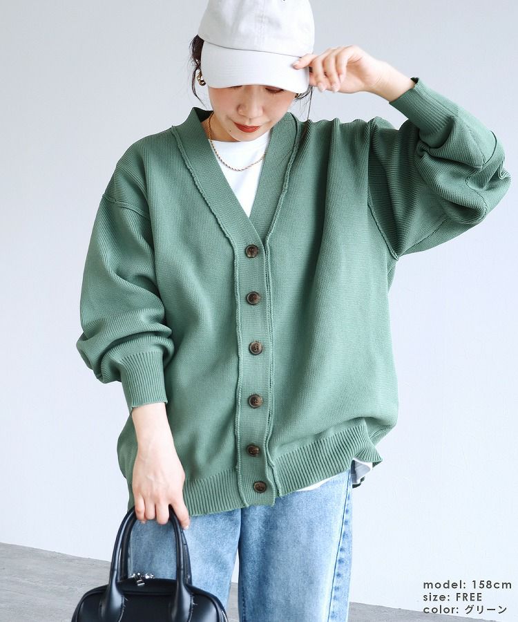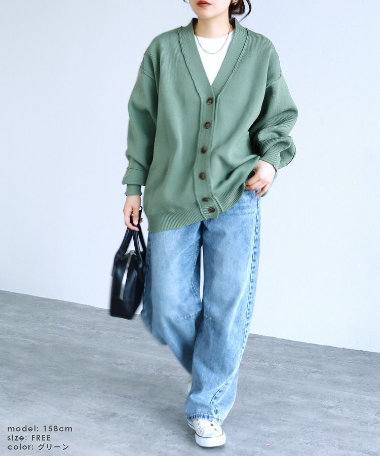 レディース カーディガン ニット ニットカーディガン ニットカーデ 羽織 ロングニット ロング丈 ボリューム袖 ダンボールニット カーデ アウター ライトアウター イージーケア Vネック 長袖 トレンド シンプル カジュアル 大人女子 30代ファッション 30代コーデ アイボリー イエロー グリーン ブラック 黒 エクリュ くすみカラー