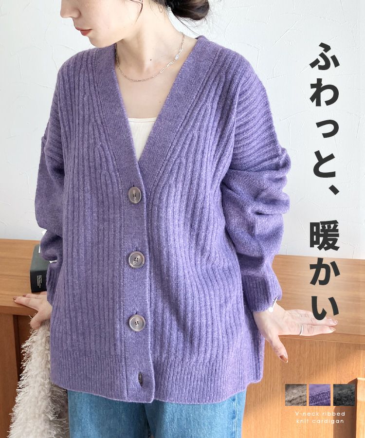 Vネックリブ編みニットカーディガン(bel-eb-5111) 宅配便発送