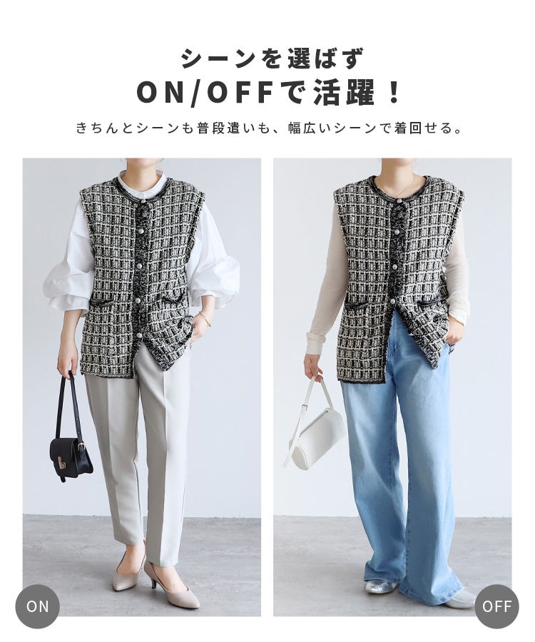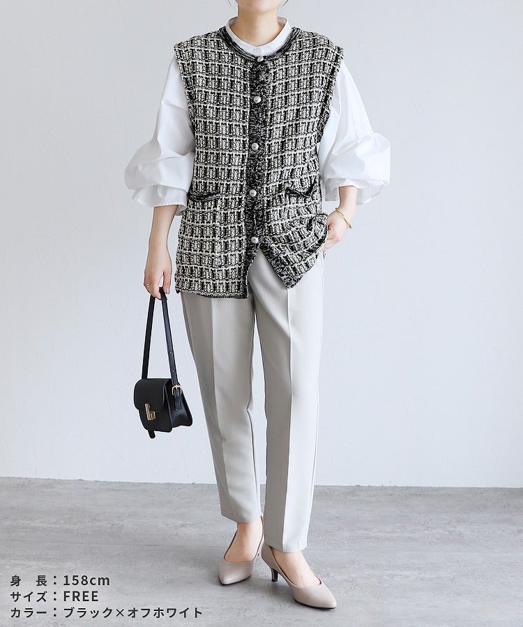 ペプラムベスト×テーパードパンツ×トップスセット(bel-hr-0616-s1) 宅配便発送
