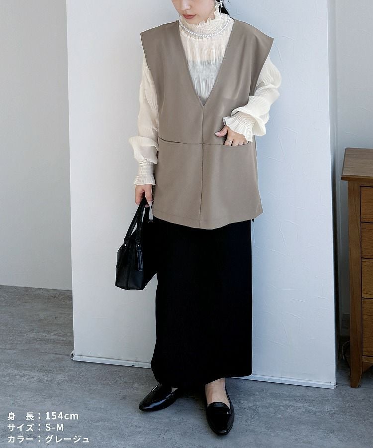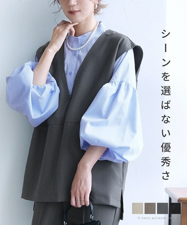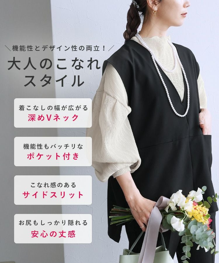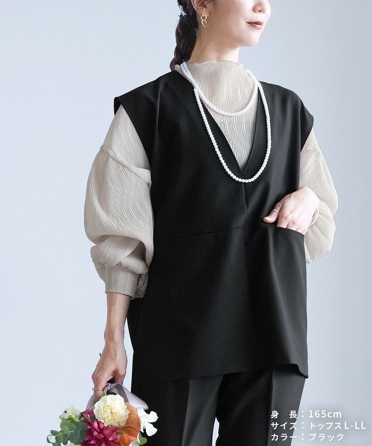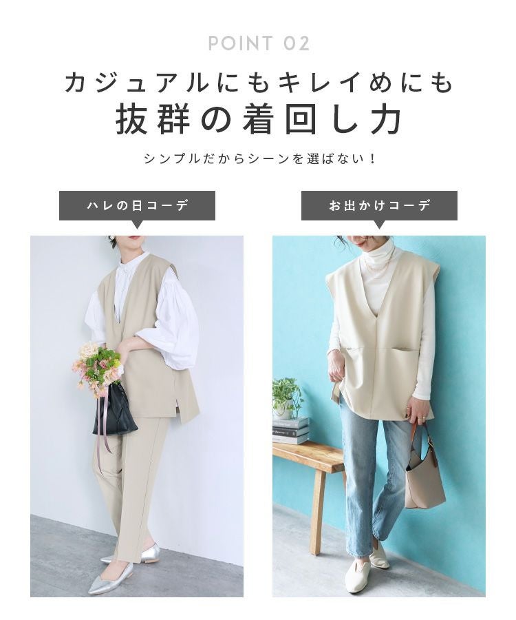 recaの洗えるオケージョンシリーズ レディース ベスト ジレ Vネック カジュアル シンプル オケージョン 卒業式 入学式 卒園式 入園式 セレモニー フォーマル 楽ちん トップス 春 大人女子 30代ファッション 30代コーデ 40代ファッション 40代コーデ サンドベージュ ブラック カーボングレー 黒 女性 セットアップ