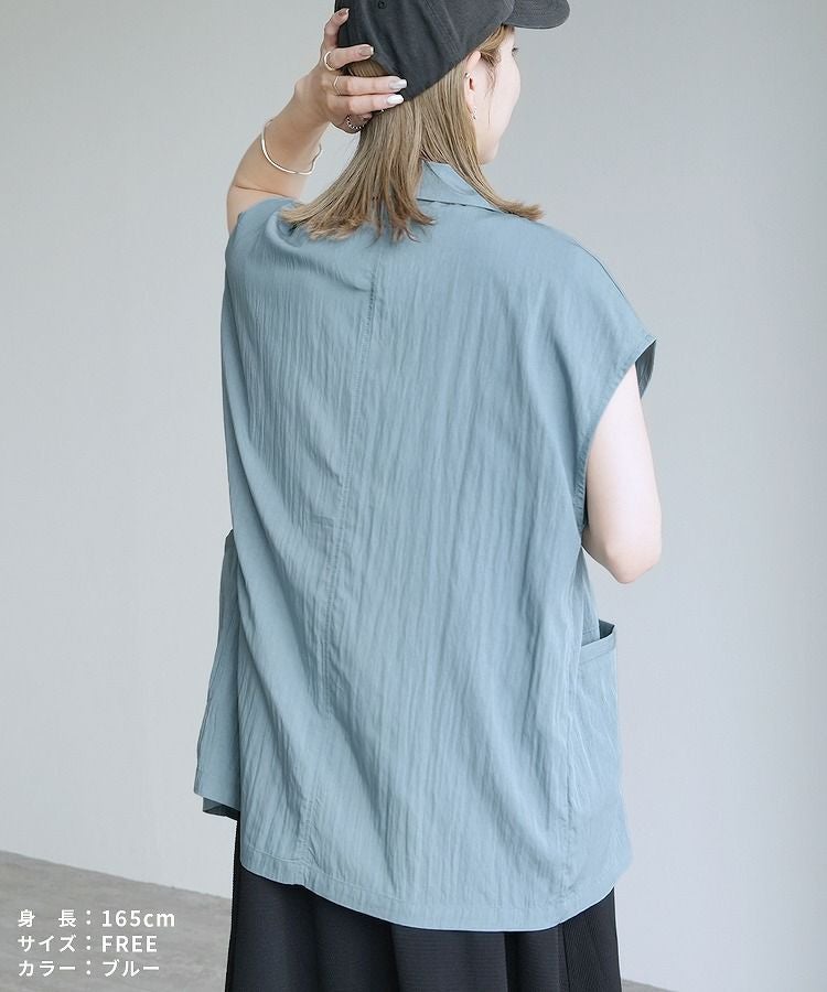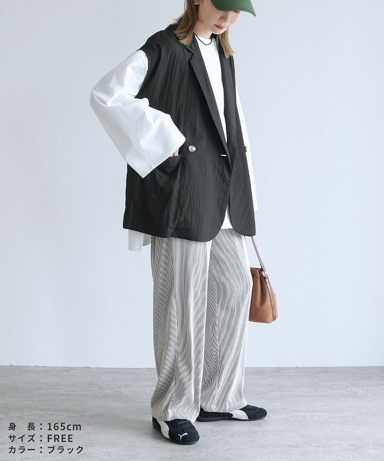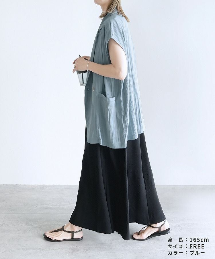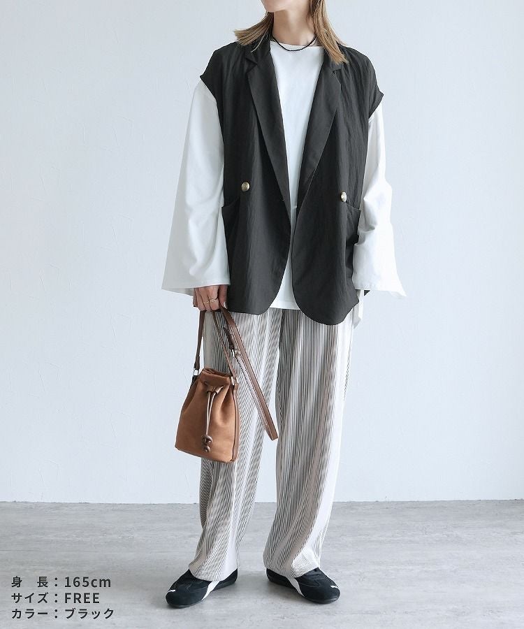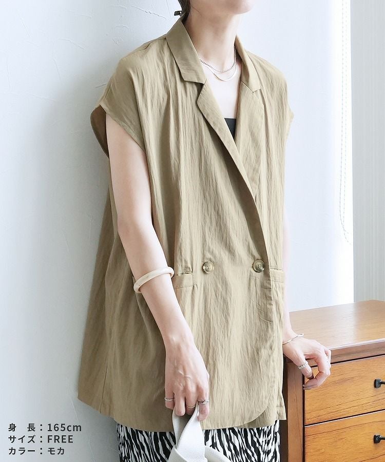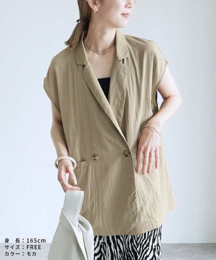 レディース アウター ベスト ジレ ジャケット テーラーカラー カジュアル シンプル 楽ちん トップス 大人女子 30代ファッション 30代コーデ シトラスイエロー ブルー ブラック 黒