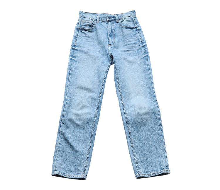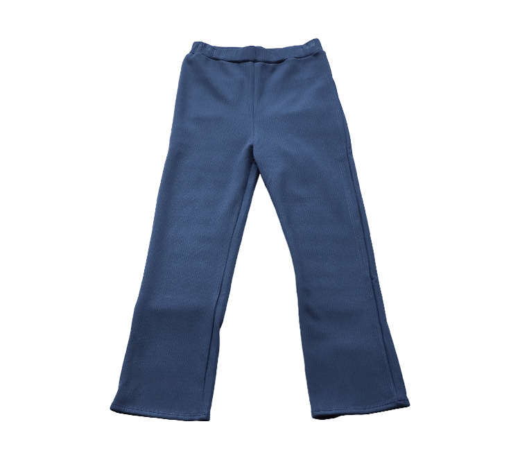 パンツのカラーはトレンドカラーのブルーをチョイス