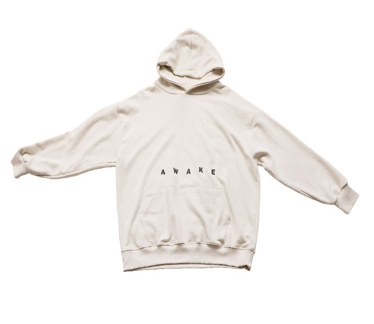 トップスには大人可愛いロゴ入りパーカーを合わせ
