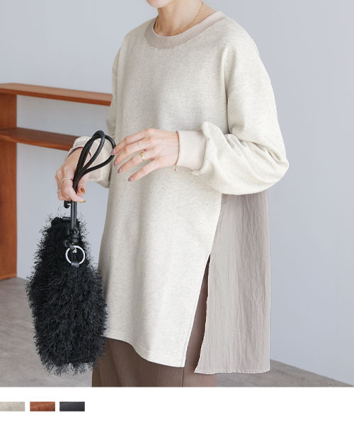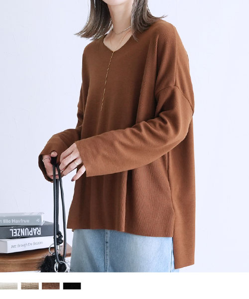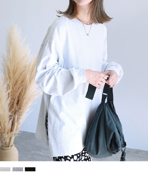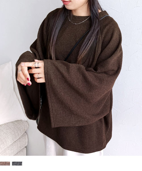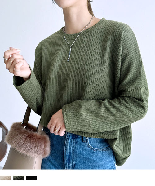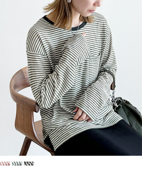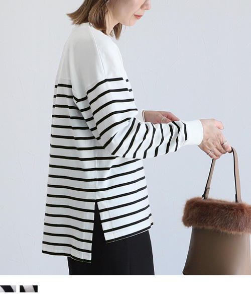 無地/ボーダー 裏起毛ビッグプルオーバー