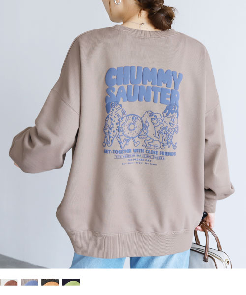 「お散歩フレンズ」裏起毛ロゴ発泡プリント&刺繍BIGスウェット