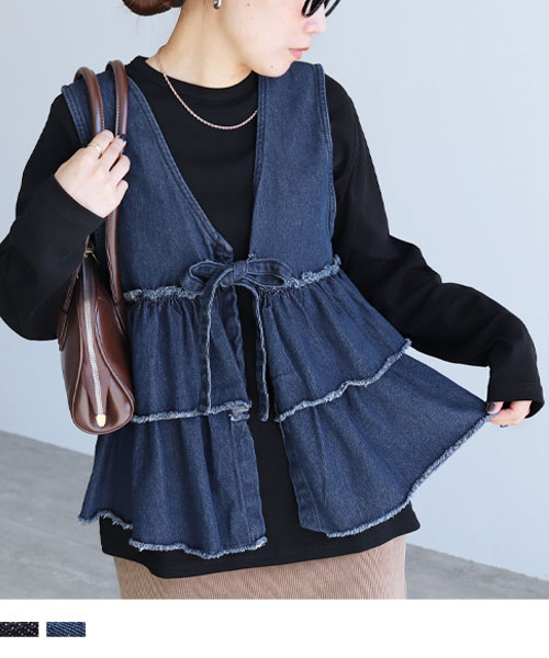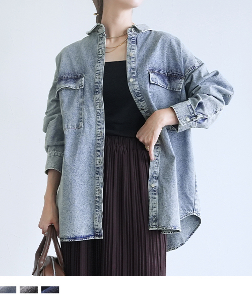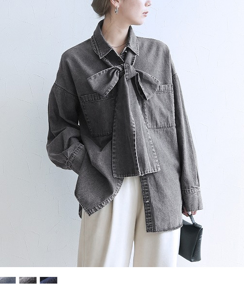 オーバーサイズデニムシャツジャケット(ボウタイ付き)
