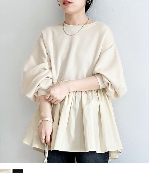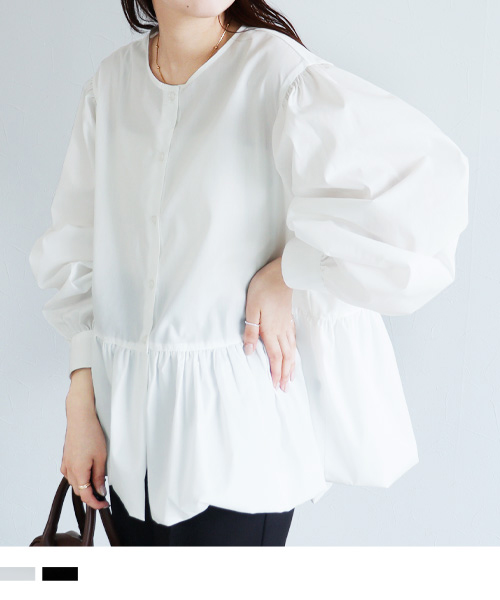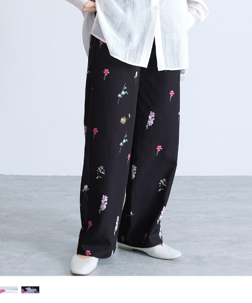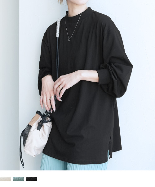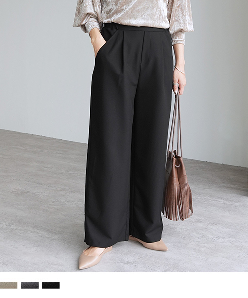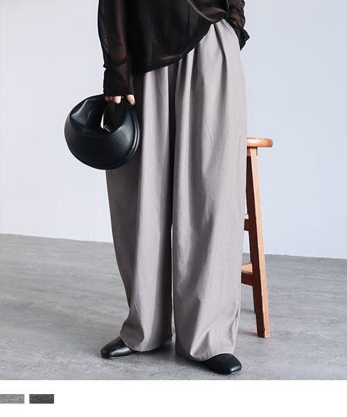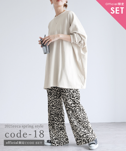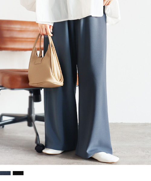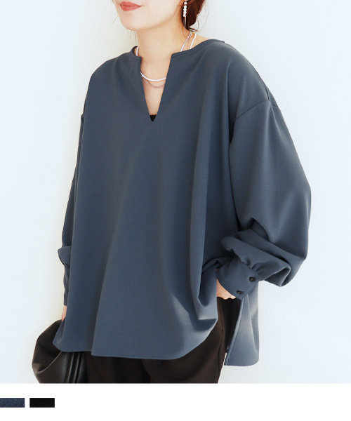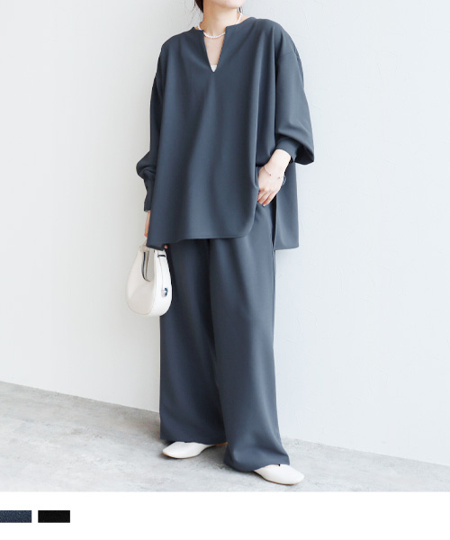 キーネックブラウス×ワイドパンツ リラクシーセットアップ