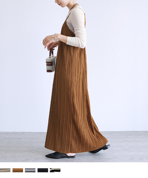 無地/アニマル柄ランダムプリーツキャミワンピース