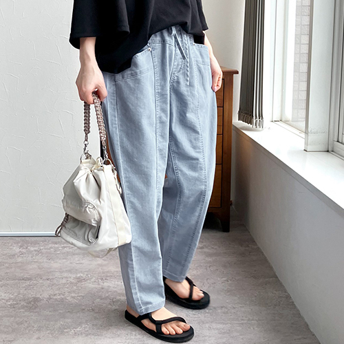ラインのきれいなイージーパンツ。
