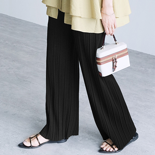 recaで大人気のプリーツパンツを合わせ、