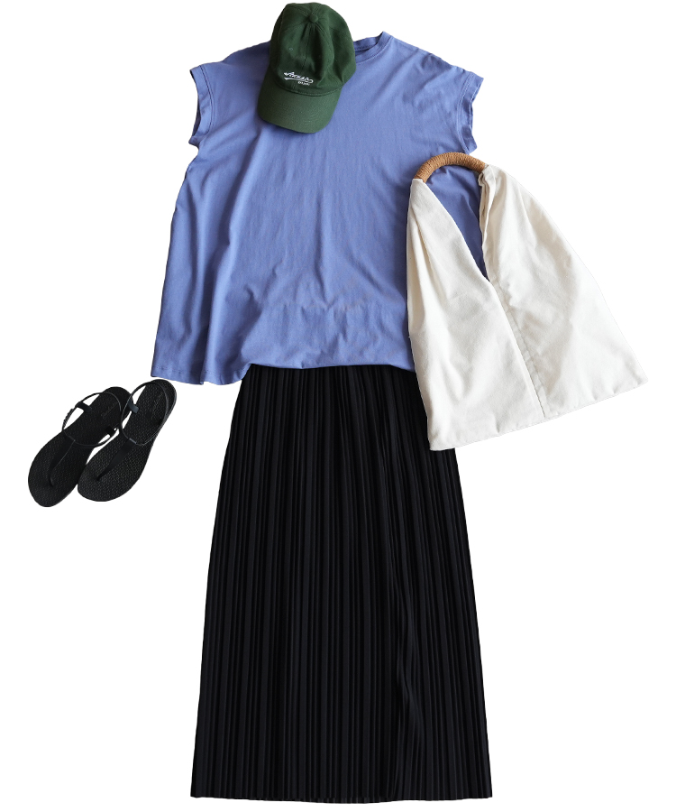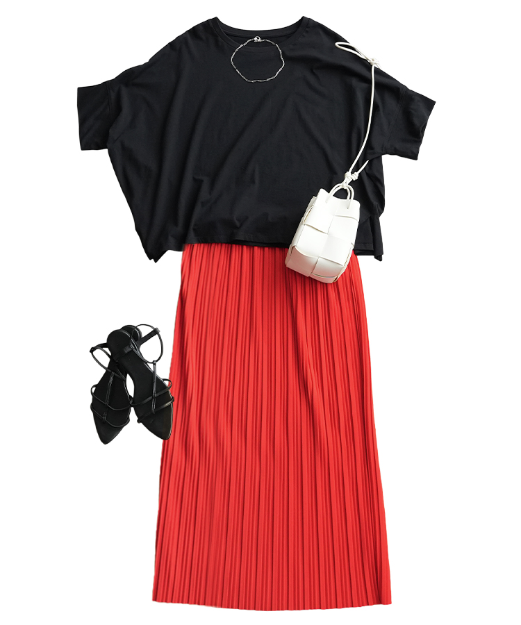 合わせたのは、美シルエットで穿き心地の良いプリーツスカート。