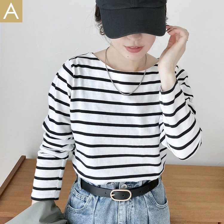 ラウンドネックボーダー長袖カットソー