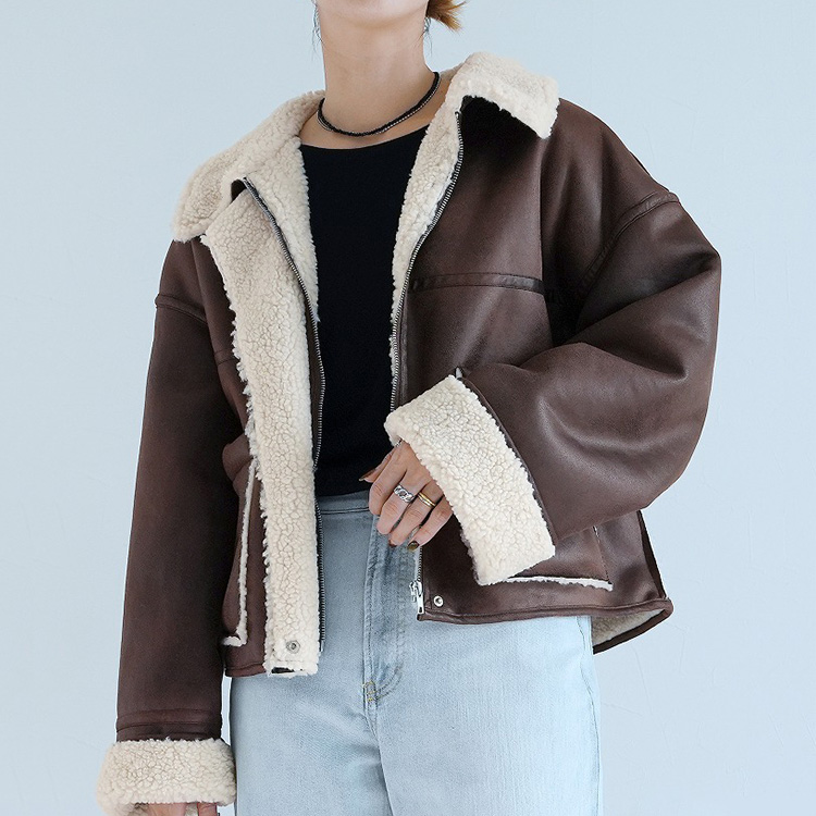 暖かみのあるボア×クールなレザームートンブルゾンに