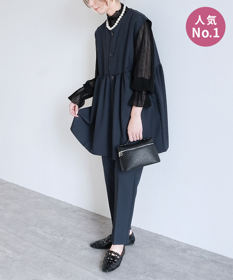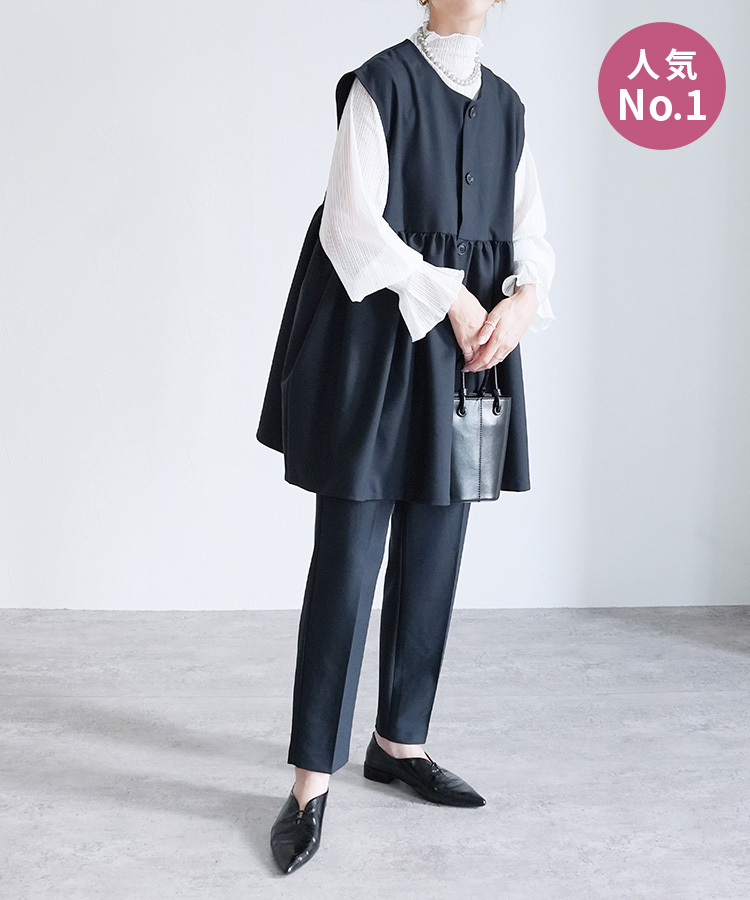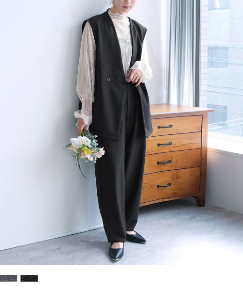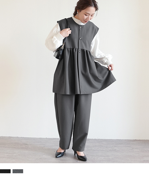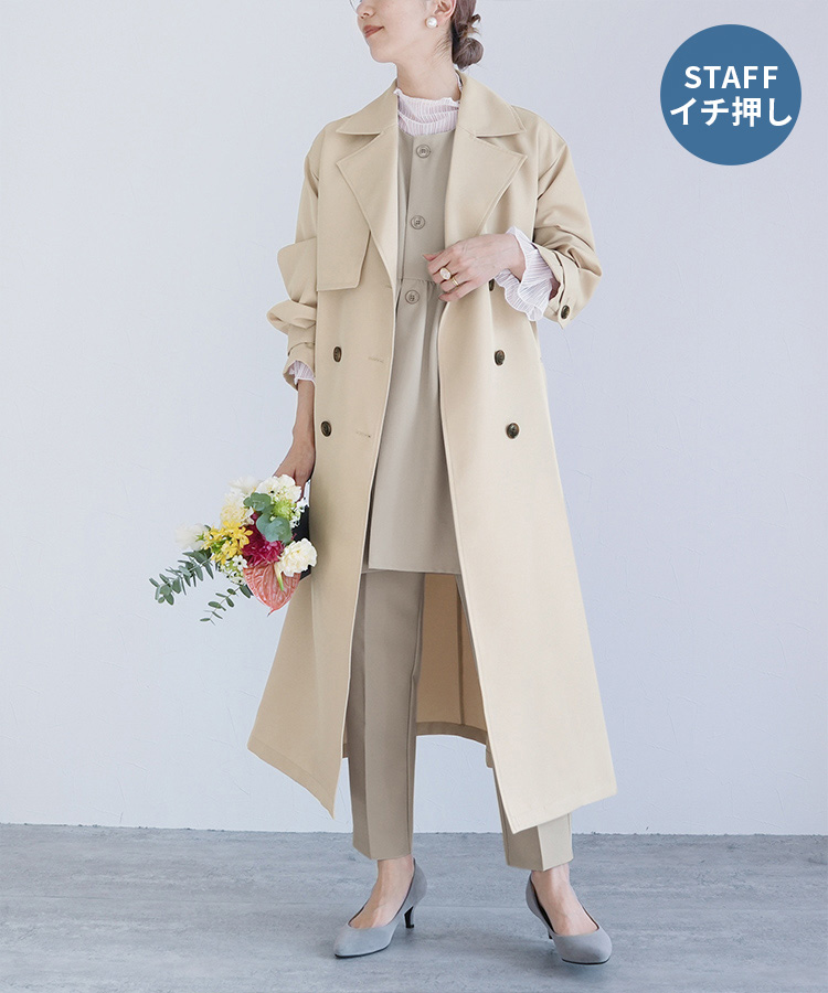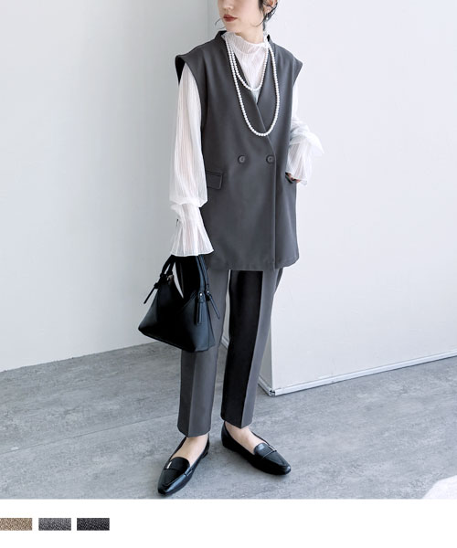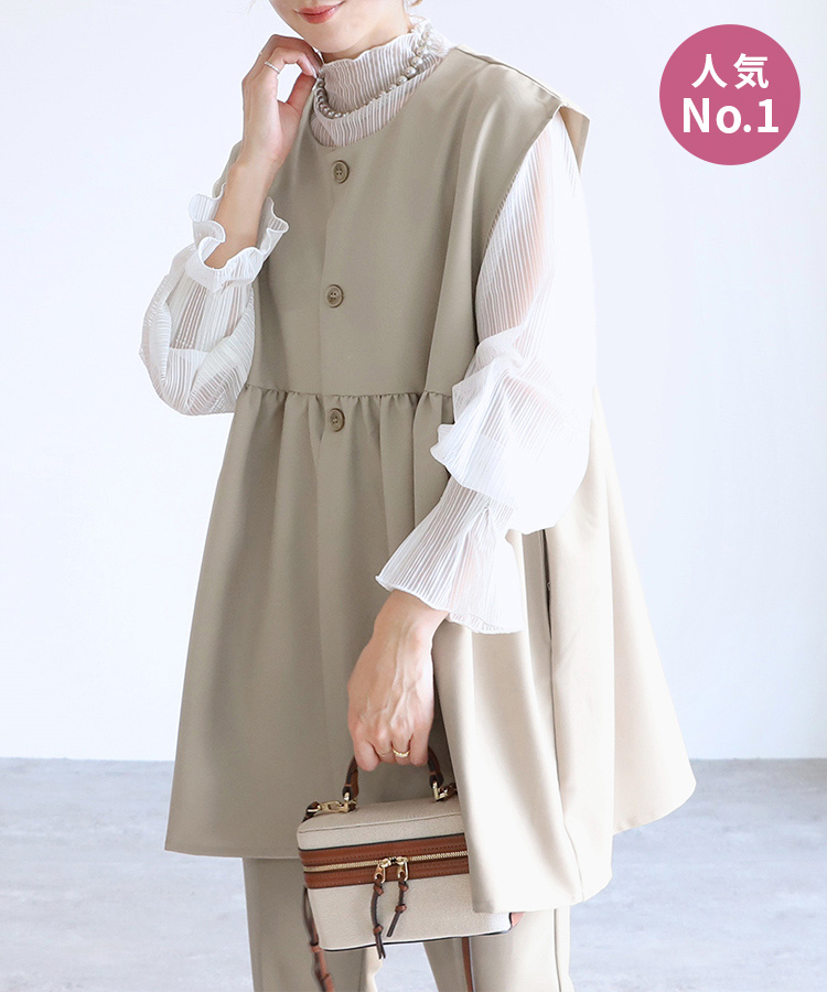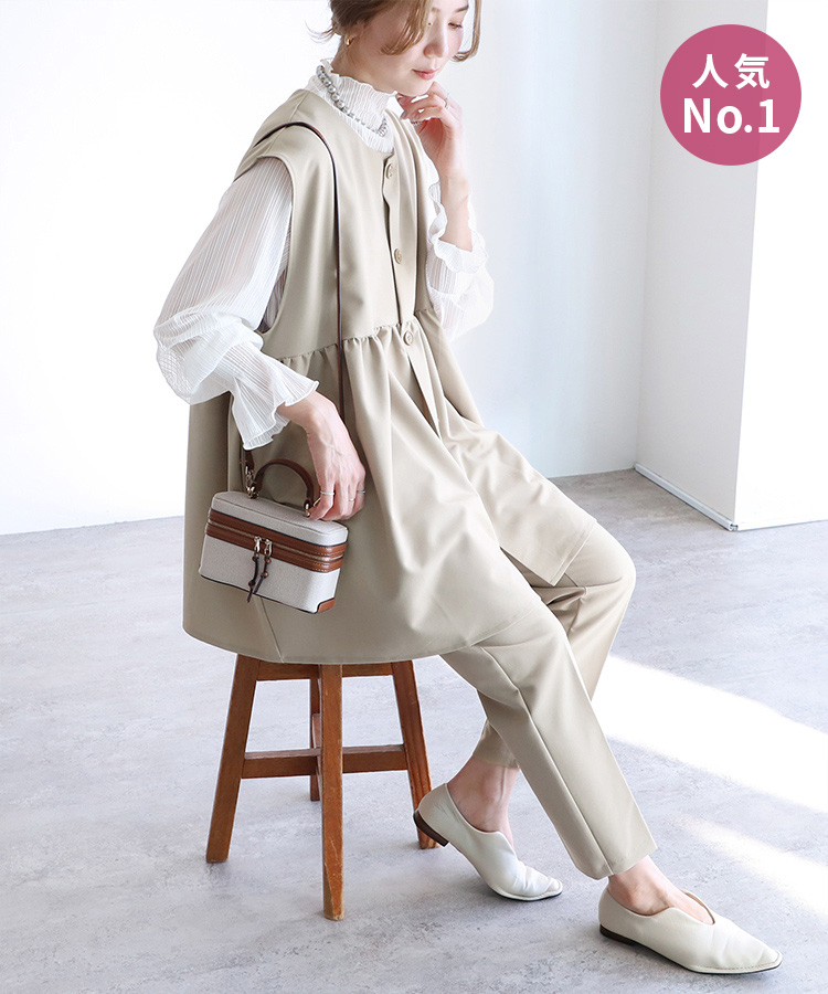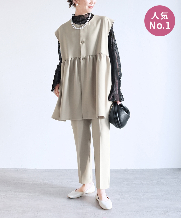 ペプラムベスト×テーパードパンツ×トップス×トレンチコートセット