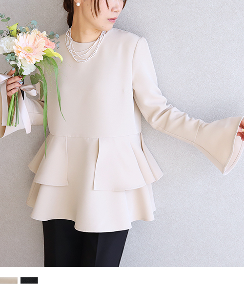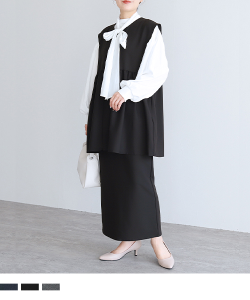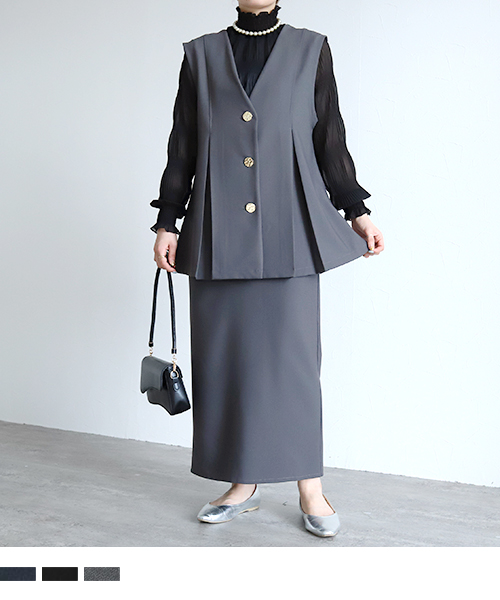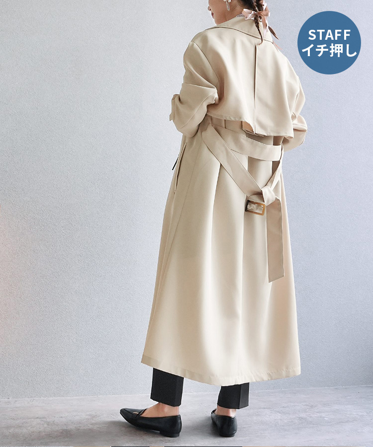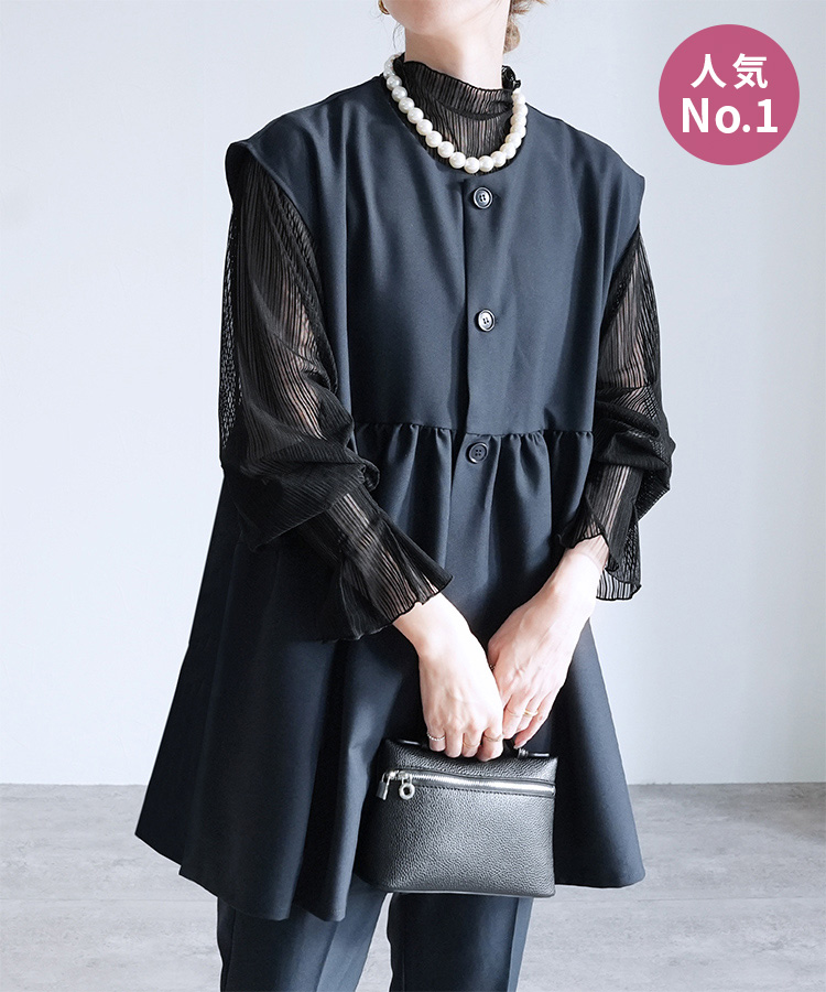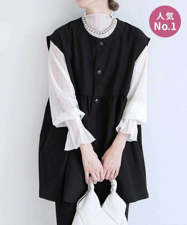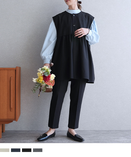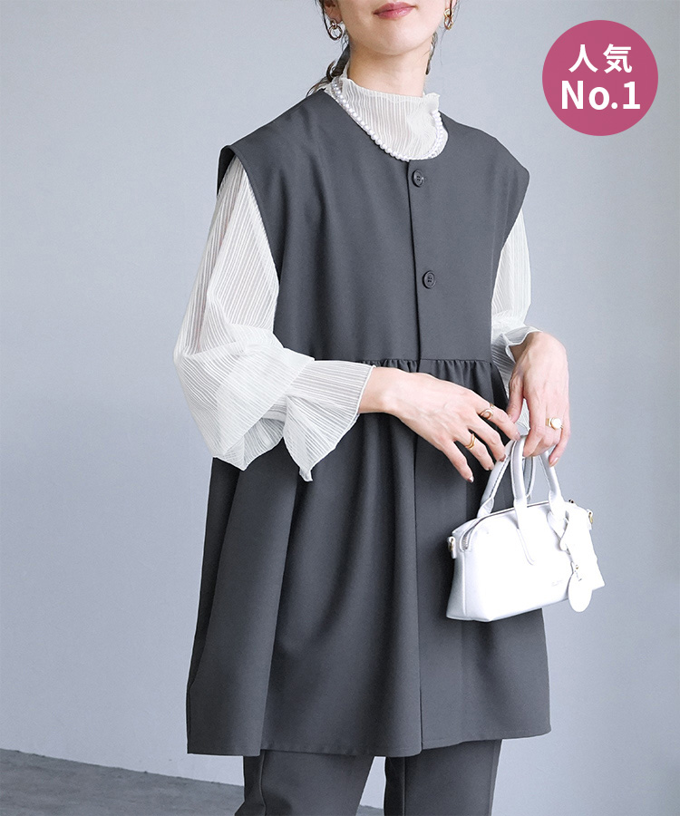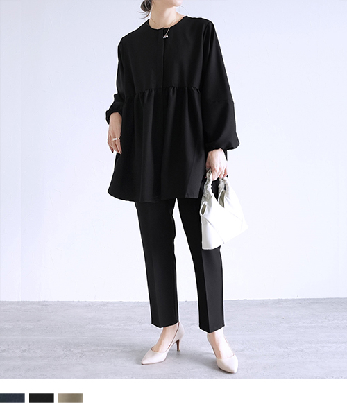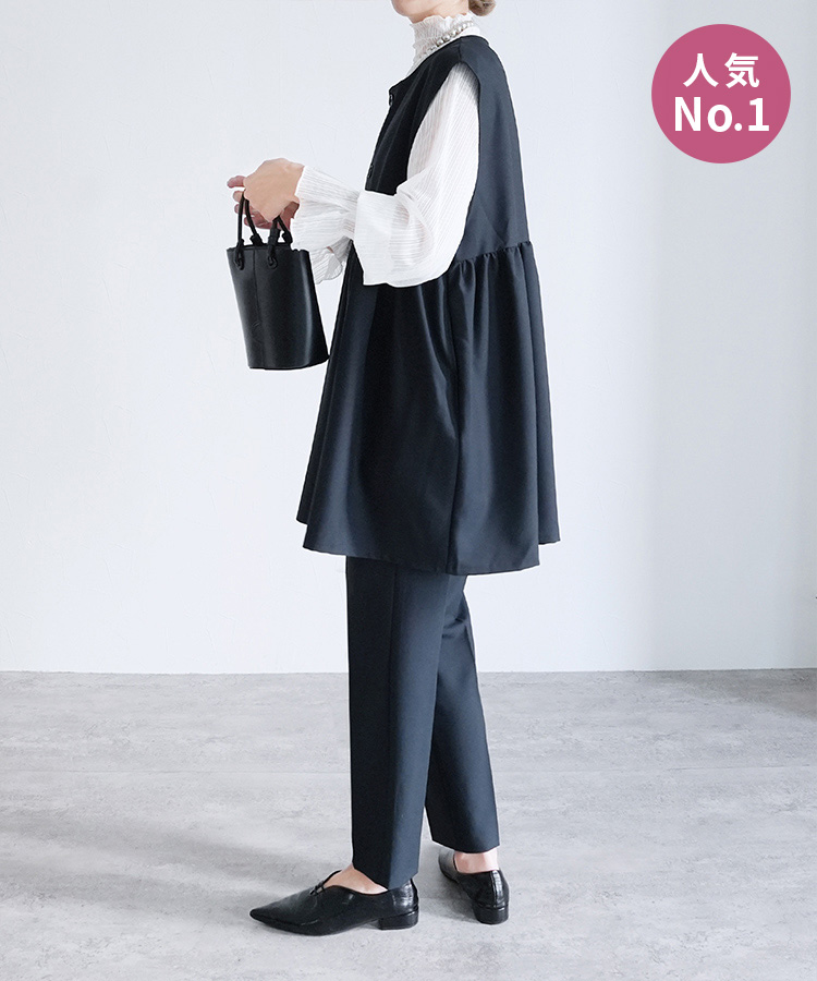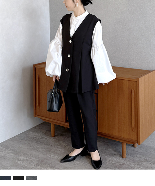 ペプラムベスト×テーパードパンツ×トップス×トレンチコートセット