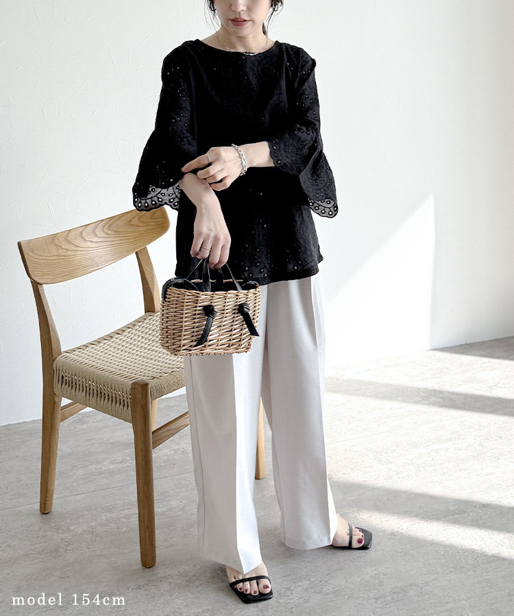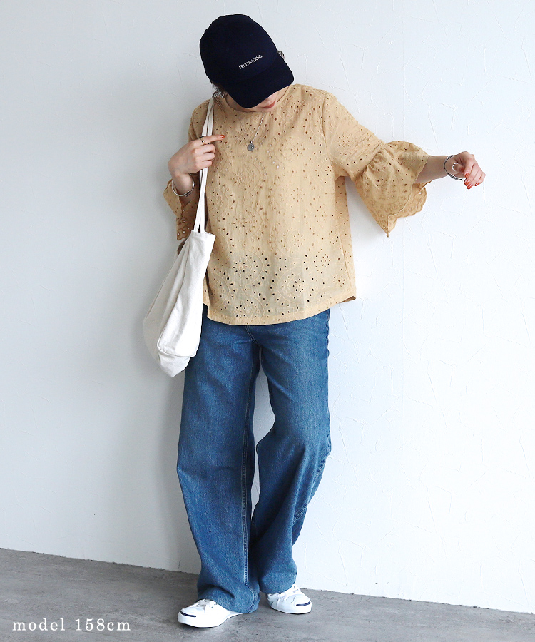 袖口スカラップレースブラウス