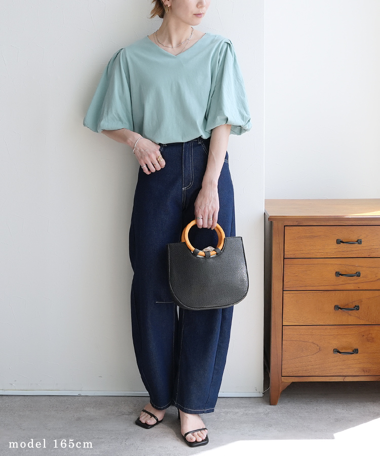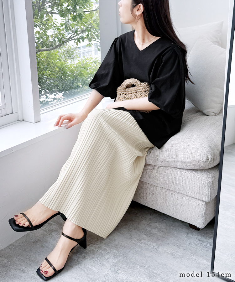 Vネックパフスリーブプルオーバー