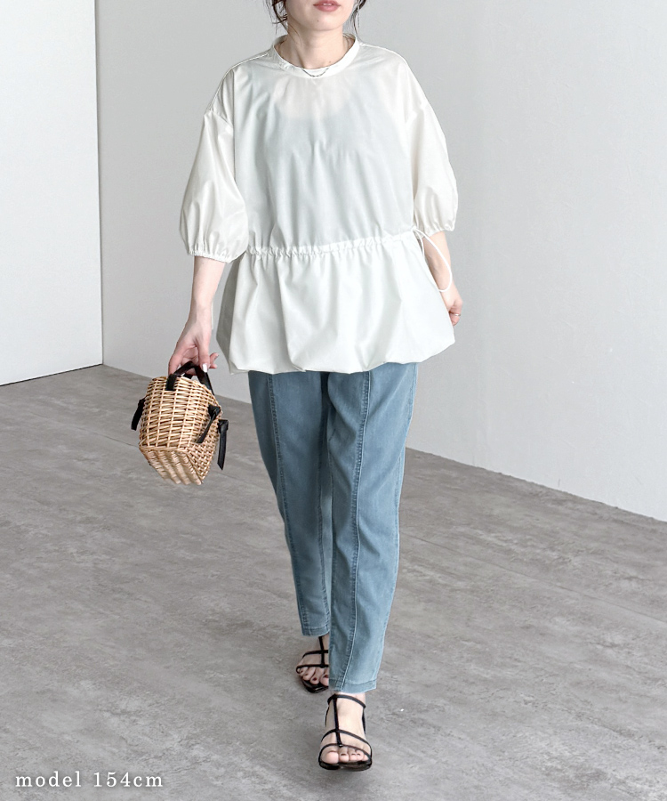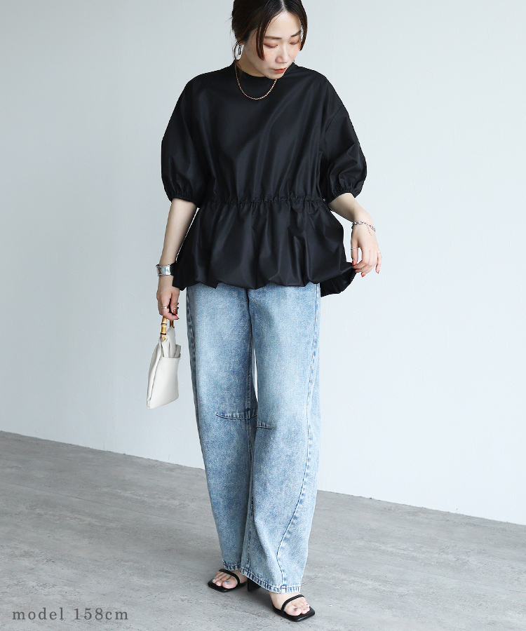 裾バルーンドロストペプラムブラウス