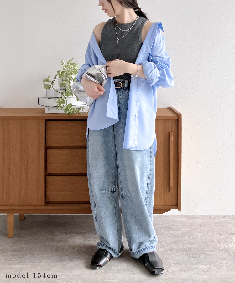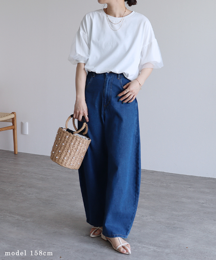 デニムバレルレッグパンツ