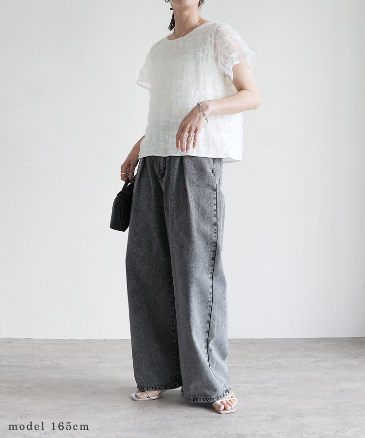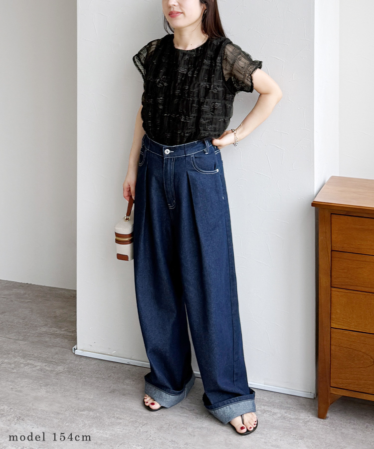 セミワイドタックデニムパンツ
