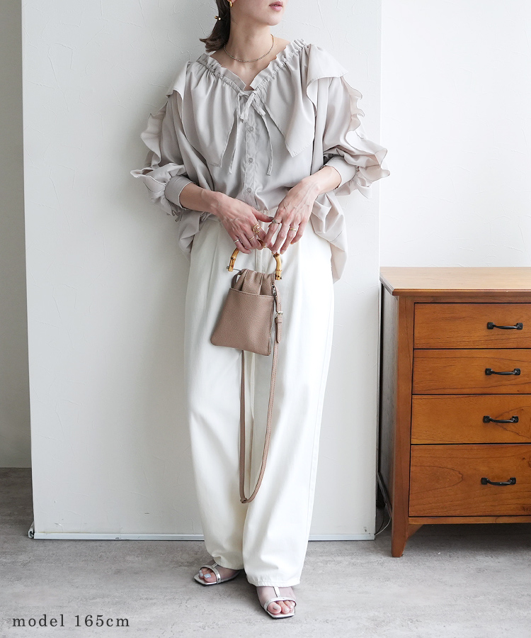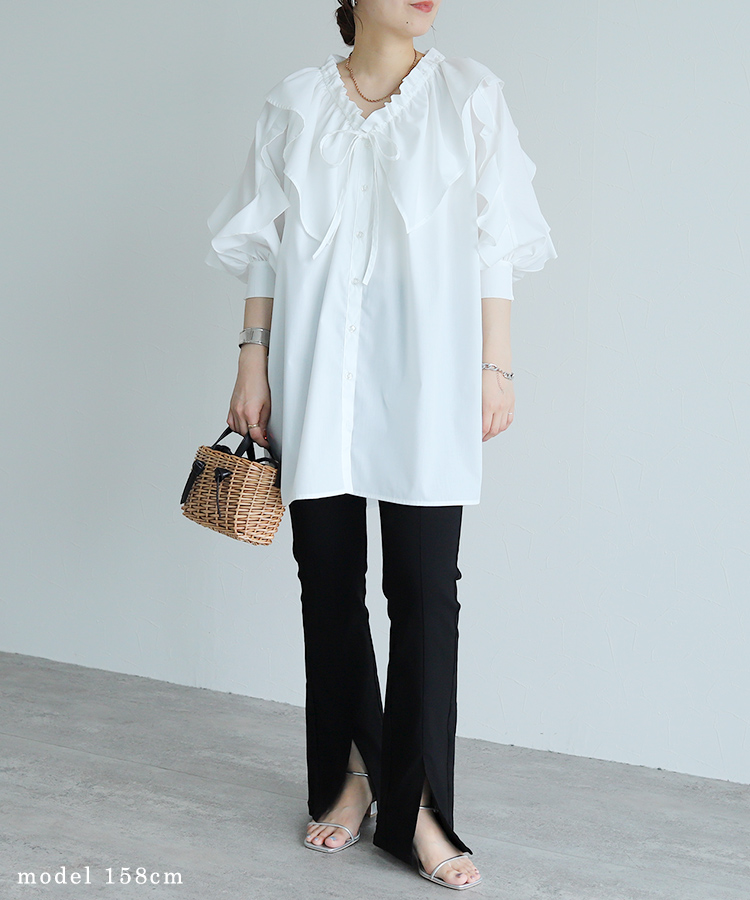 フリルカラー&フリルスリーブブラウス