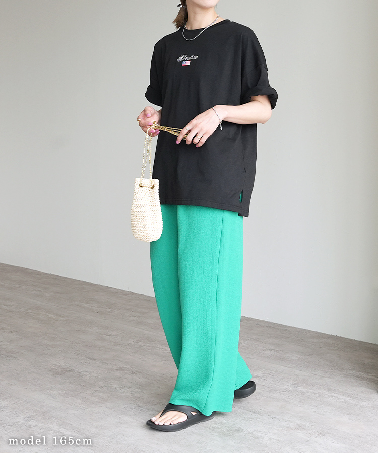 無地/ストライプエンボス加工イージーパンツ