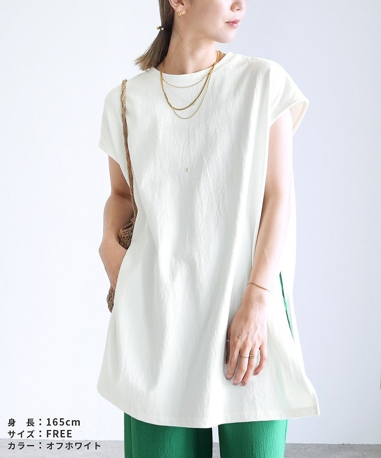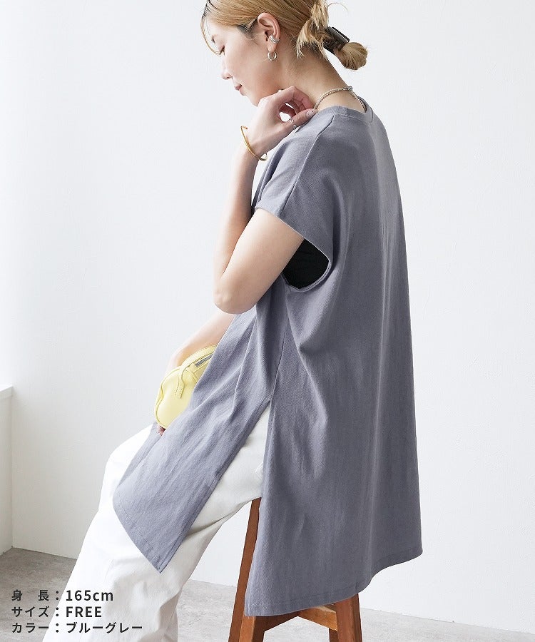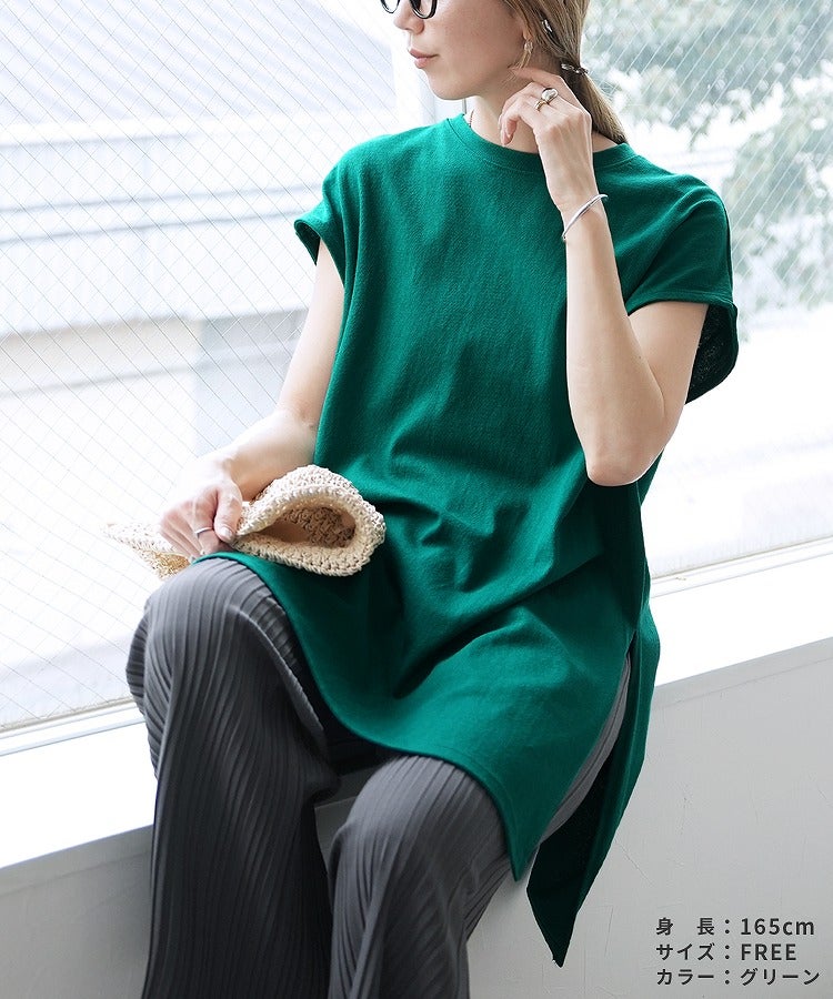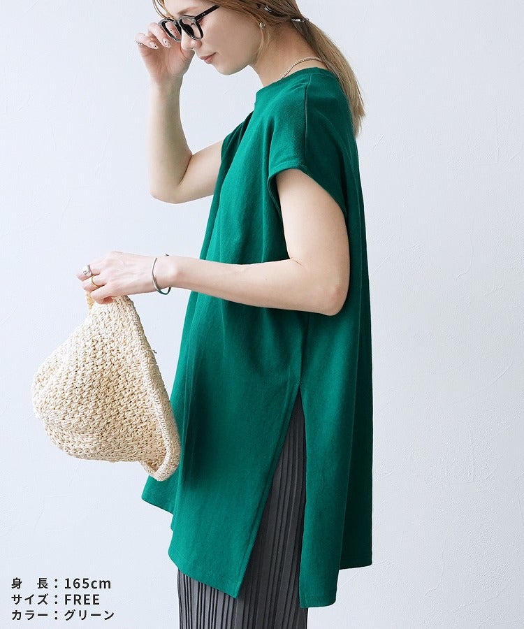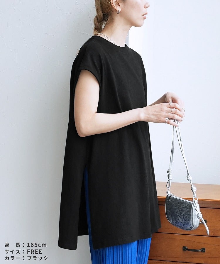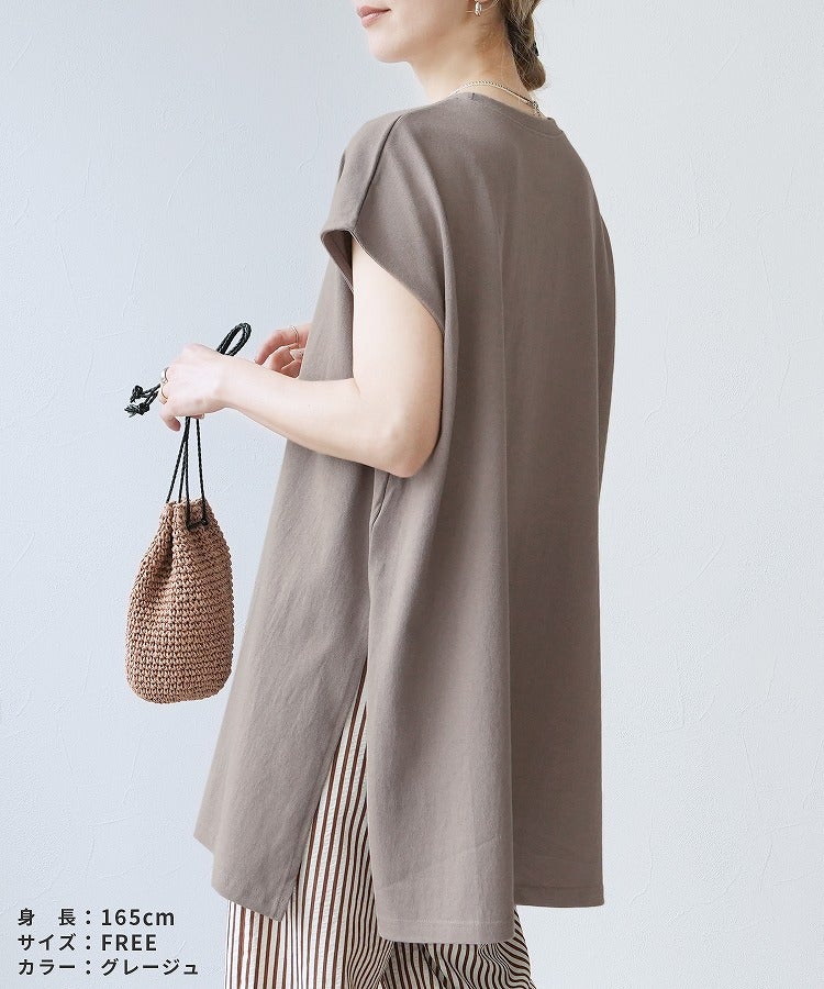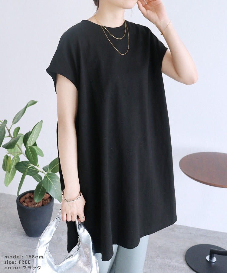 フレンチスリーブチュニックカットソー(R22157-k) ネコポス発送10