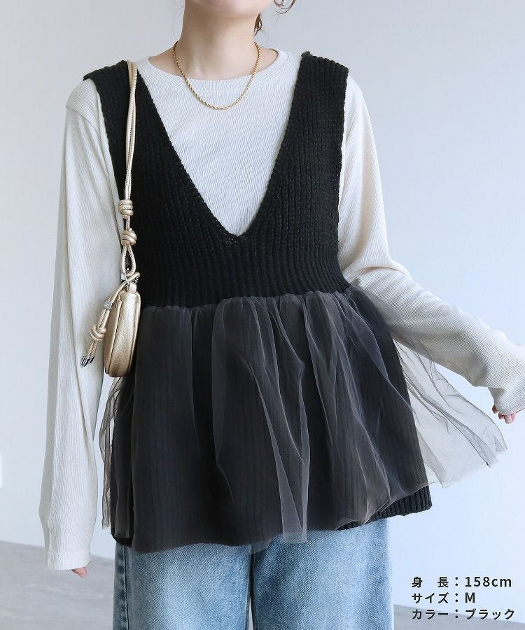 他の画像を見る 春の早割 ニット×チュールVネックペプラムベスト(bel-y-77502) 宅配便発送 ¥ 1,980 税込 販売期間 2026/02/05 12:00 〜 2026/02/12 11:59 詳細を見る お気に入りに登録する