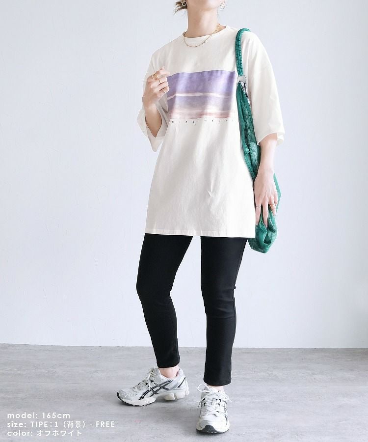 選べる2デザイン転写プリント五分袖オーバーサイズTシャツ(bel-y-29515) ネコポス発送10