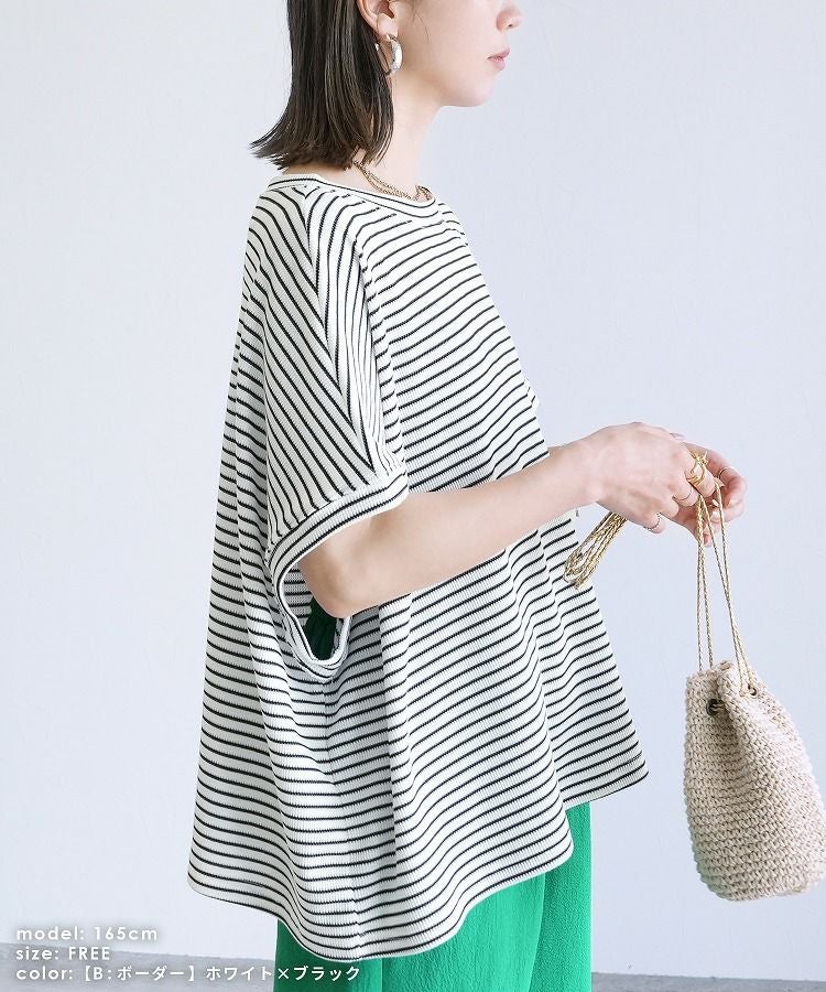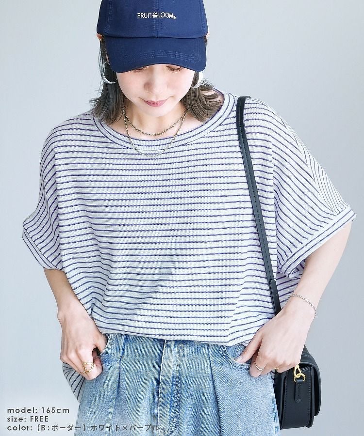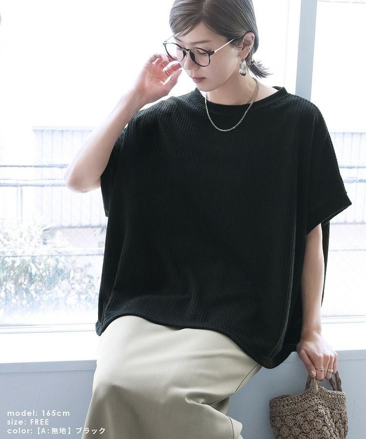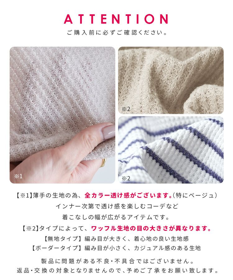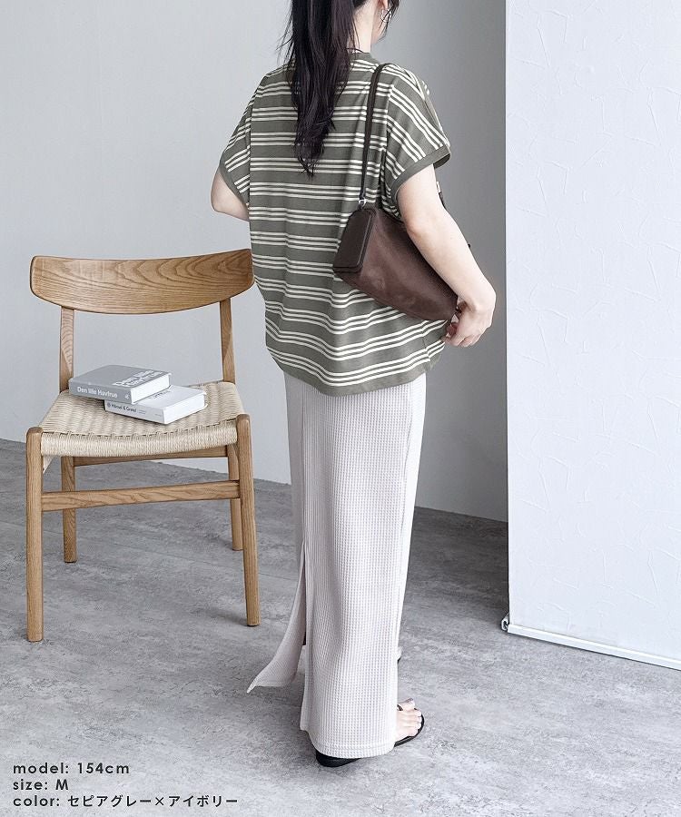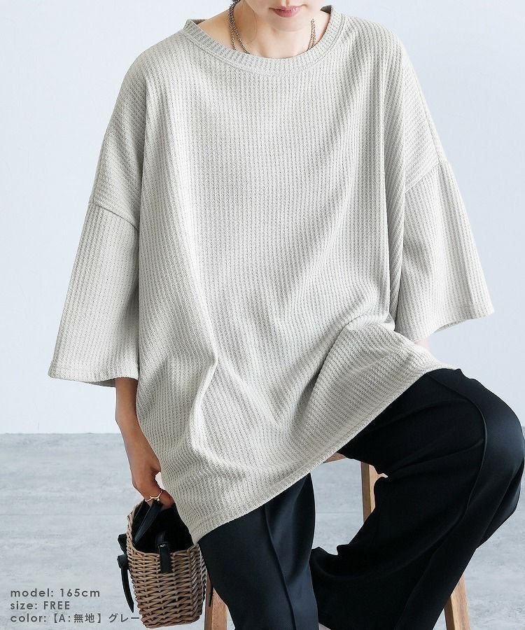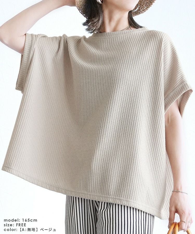 無地/ボーダー柄 ワッフルボックスワイドTシャツ(R25102-k) ネコポス発送10