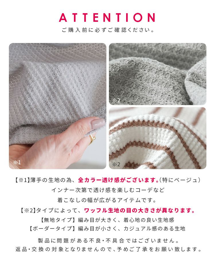 無地/ボーダー柄 ボックスノースリワッフルワイドカットソー(R25101-k) ネコポス発送10