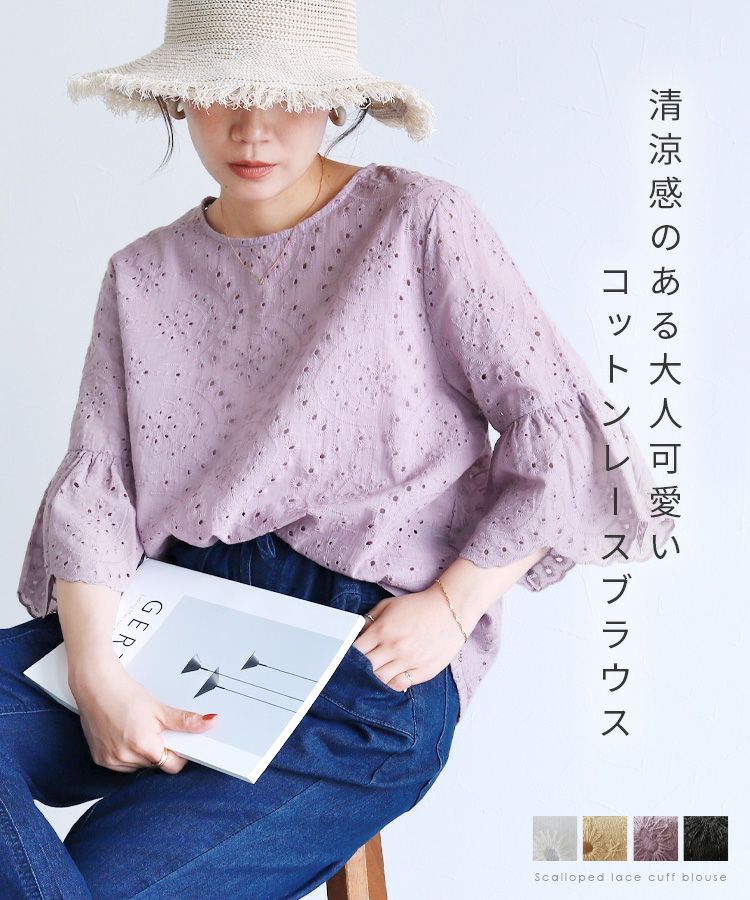 袖口スカラップレースブラウス(my-4n25-1515) ネコポス発送10